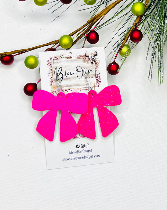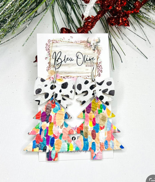 Glitz & Glam Christmas Trees & Bows Leather Earrings