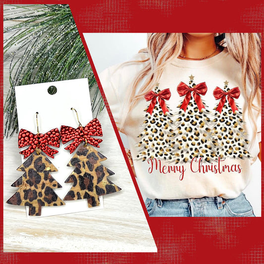 Glitz & Glam Leopard Christmas Tree Leather Earrings