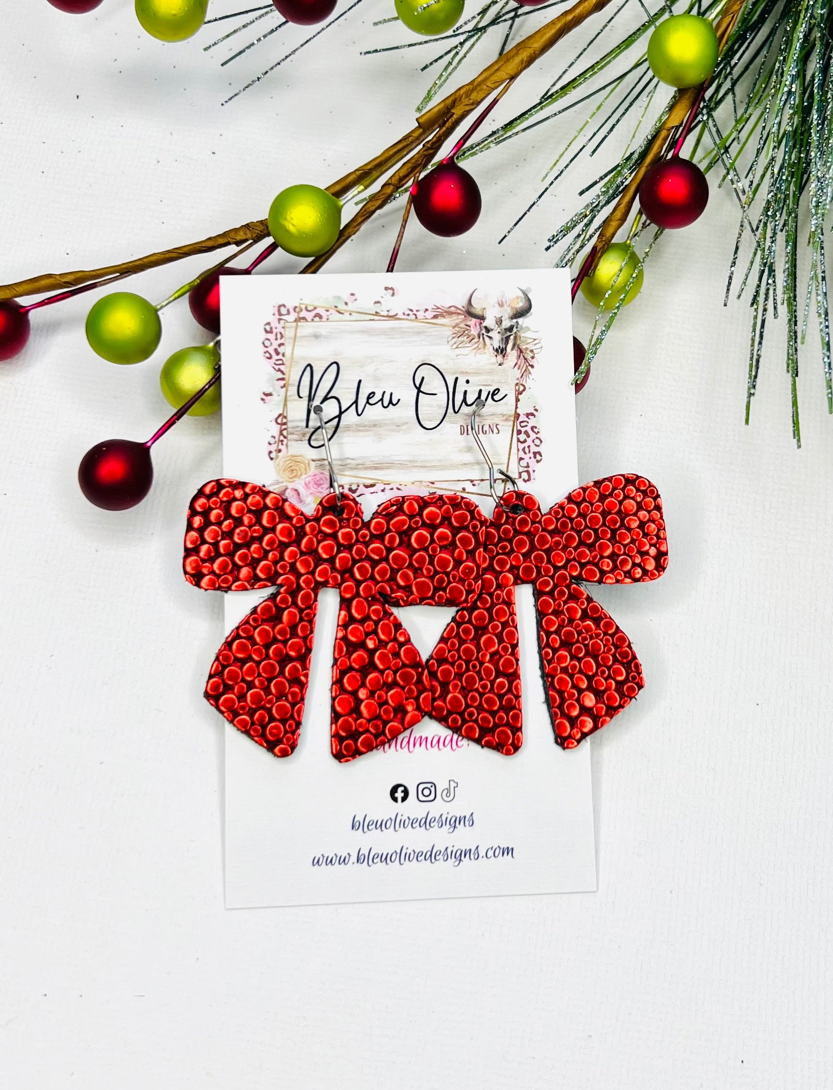 Our bows are a classic accessory for the holidays! Β They also make the perfect pairing for every day wear. High Quality guaranteed! Nickel & lead free hardware, perfect for sensitive ears. Β Most of our hardware is made out of stainless steel.Β
